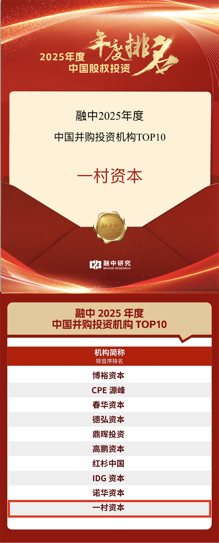 ▼2025年度中国并购投资机构TOP10